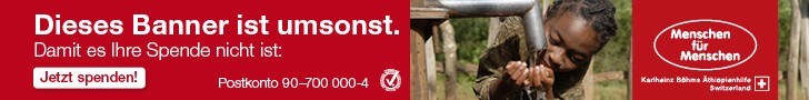 Falls Ihnen als Verantwortliche/r eines Online-Mediums noch freie Werbeflächen zur Verfügung steht, freuen wir uns, wenn Sie uns mit einer kostenlosen Web-Banner-Schaltung unterstützen könnten. Mit der Publikation unterstützen Sie die Stiftung Menschen für Menschen bei der Mittelbeschaffung für die wichtige Entwicklungsarbeit in Äthiopien.
